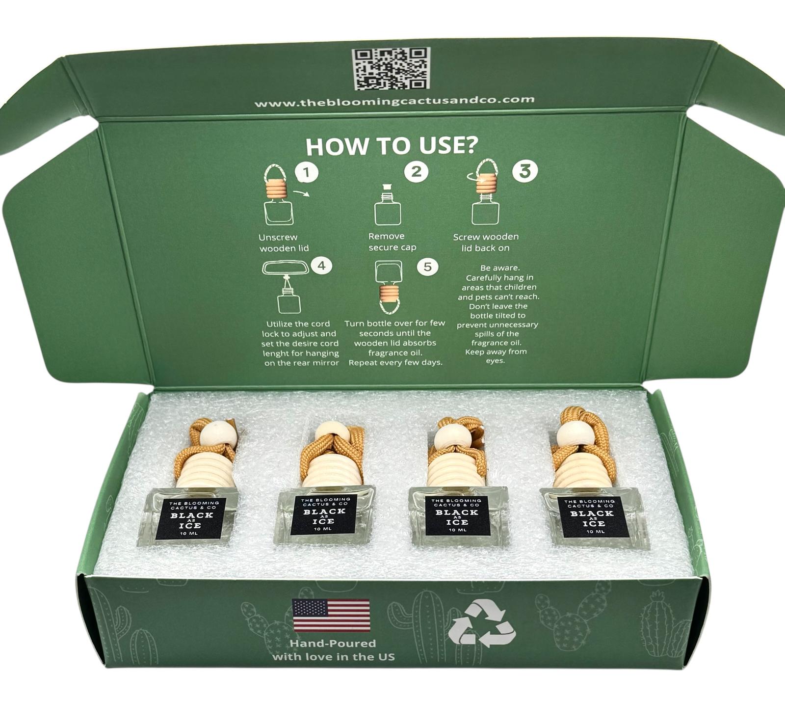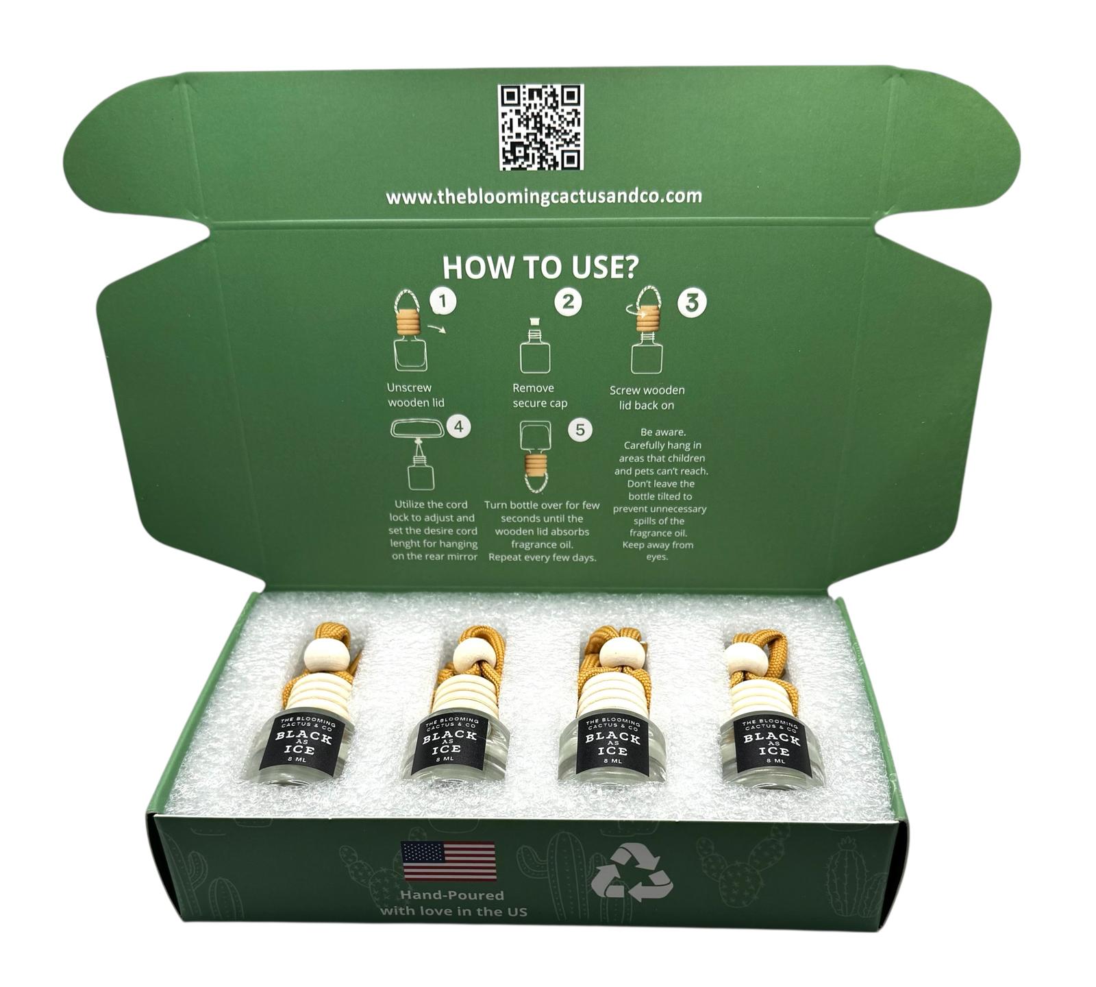 The compact size of these car air fresheners allows you to place them anywhere in your car, from the rearview mirror to the glove compartment. Plus, they are easy to install and remove when it's time for a replacement. You'll love how these 4 Pack Car Air Fresheners keep your car smelling amazing while adding an extra touch of style! These premium eco-friendly diffuser oils will transform your car or small room into an unforgettable and elegant experience